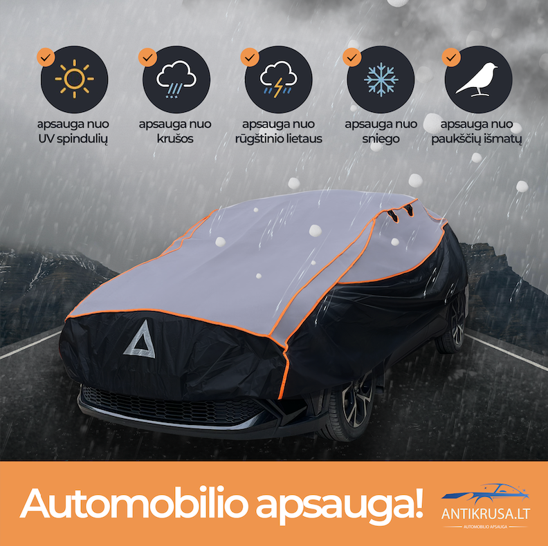 ANTIKRUŠA – tai kokybiškas, oro sąlygoms atsparus automobilio apdangalas, kuris gali būti naudojamas tiek žiemą, tiek ir vasarą. Automobilio apdangalas skirtas apsaugoti automobilį nuo krušos, dulkių, lietaus, medžių sakų, lapų.