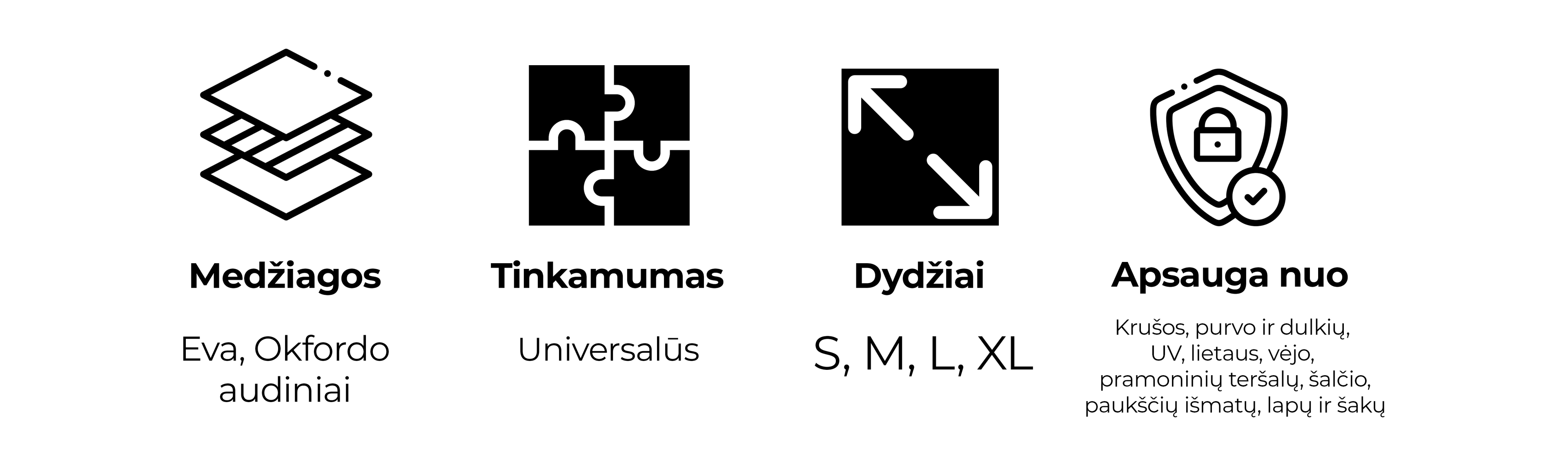 Apdangalo šoninės dalys pagamintas iš labai tvirto, atsparaus plyšimui 150D Oksfordo audinio. Jis atsparus sulankstymui, senėjimui ir prailgina apdangalo tarnavimo laiką. Siūlės apdirbamos visomis kryptimis, kad apdaila būtų tvarkinga ir patvari. Viršutinė apdangalo dalis, pagaminta iš EVA, pasižymi dideliu patvarumu. Itin atsparus nusidėvėjimui ir dilimui, etileno-vinilo acetatas įrodo savo ilgaamžiškumą įvairiose srityse. Apdangalas atsparus sniegui ir šalčiui žiemą.